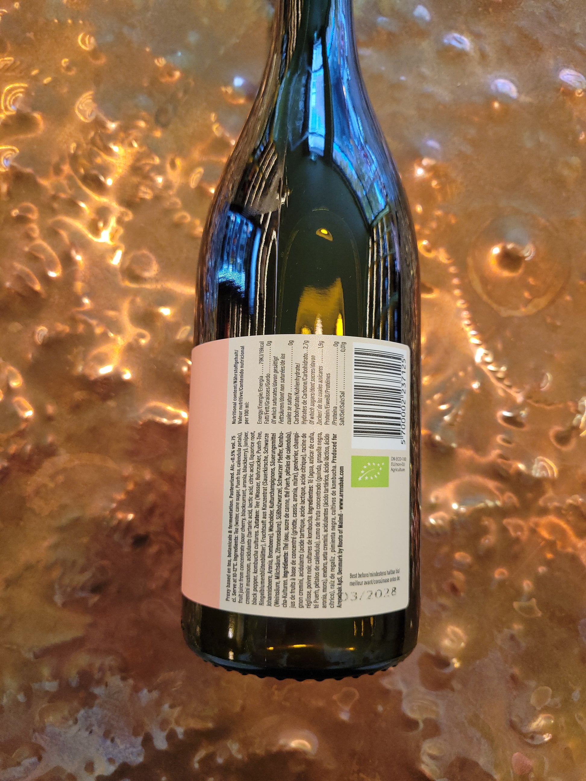 Crafted in Copenhagen, Denmark, this beverage uses ripe pu-erh tea and calendula, as well as aronia, sour cherry and other juices for colour and flavour. Certified organic.