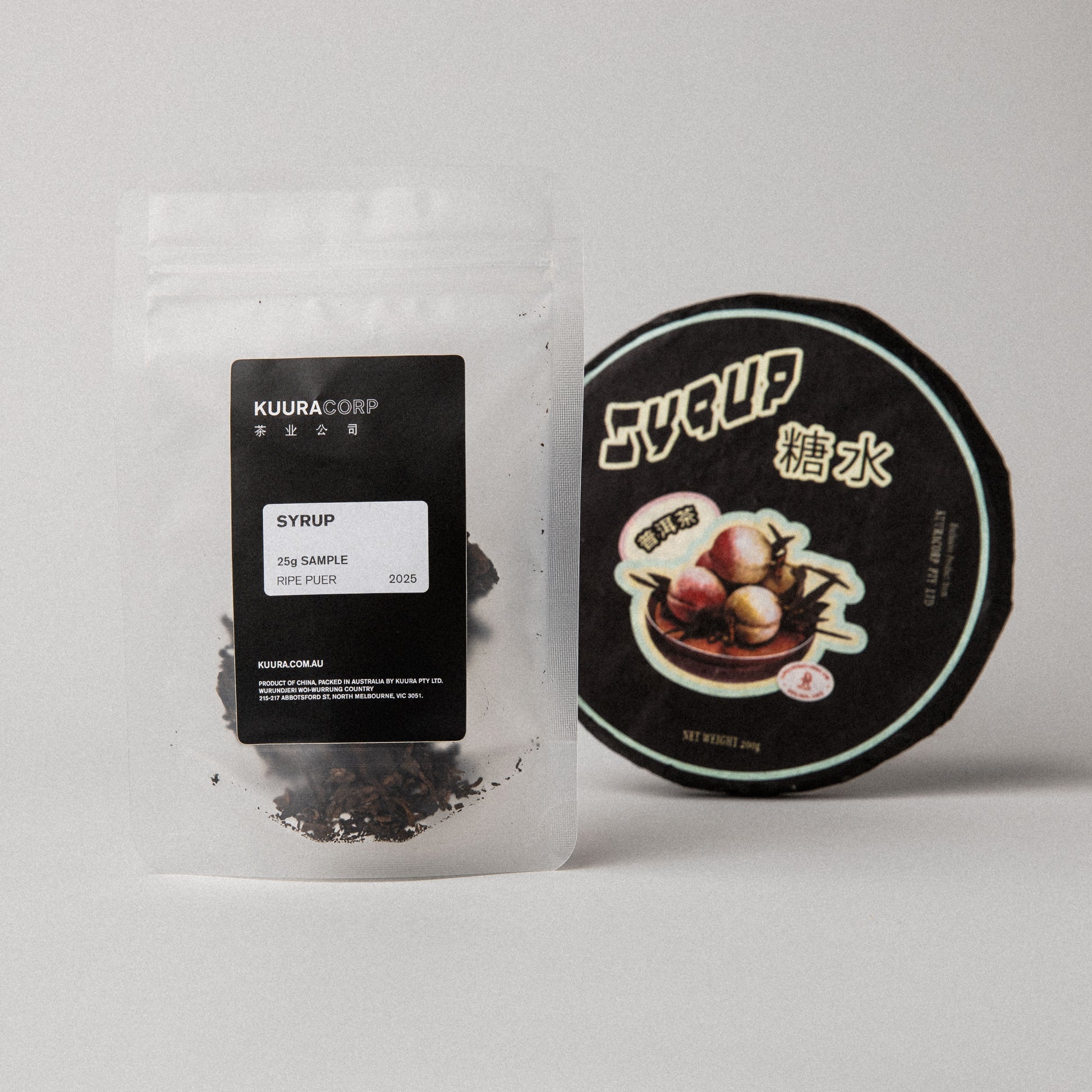 Now in its second year of pressing, ‘Syrup’ returns to the KUURACORP lineup as our sweetest ripe puerh tea. Like biscuits and tea had a child, in ripe puerh form.