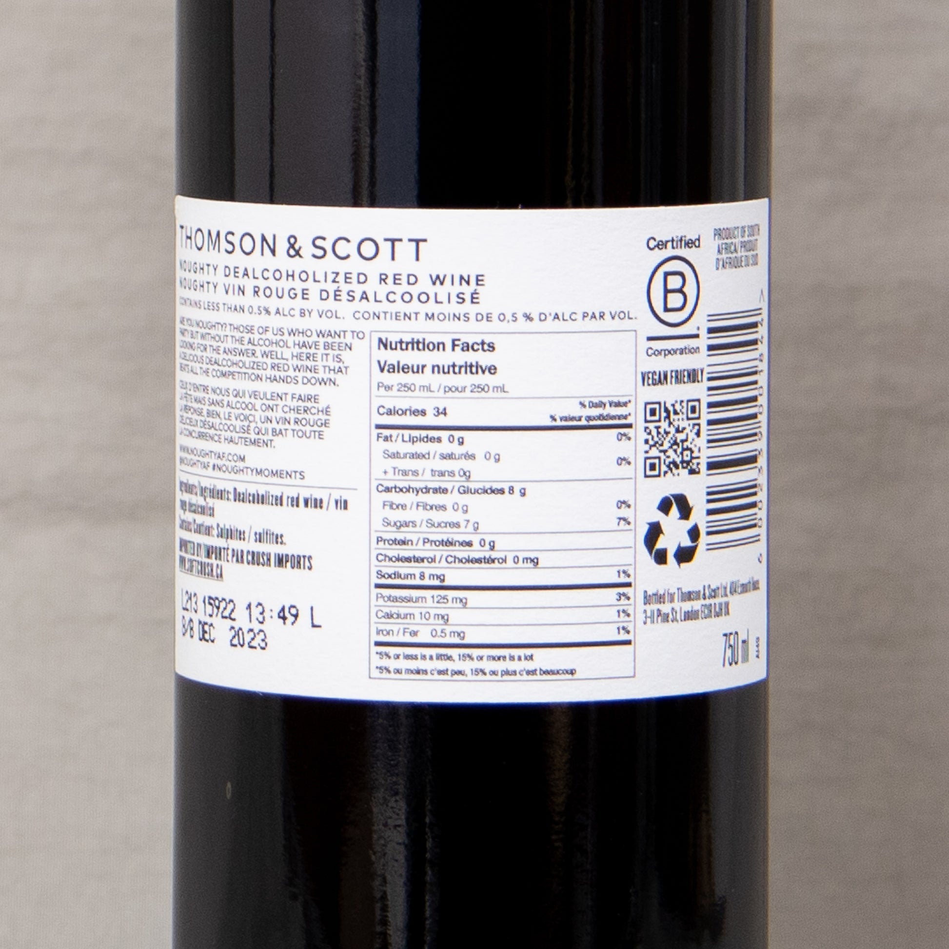 We swore never to buy another punny non-alcoholic drink again but after tasting this wine we couldn't pass it up - so here we are, hat in hand, humbly offering you Thomson and Scott's 'Noughty' red - a big juicy red made from dry-farmed Syrah grapes.